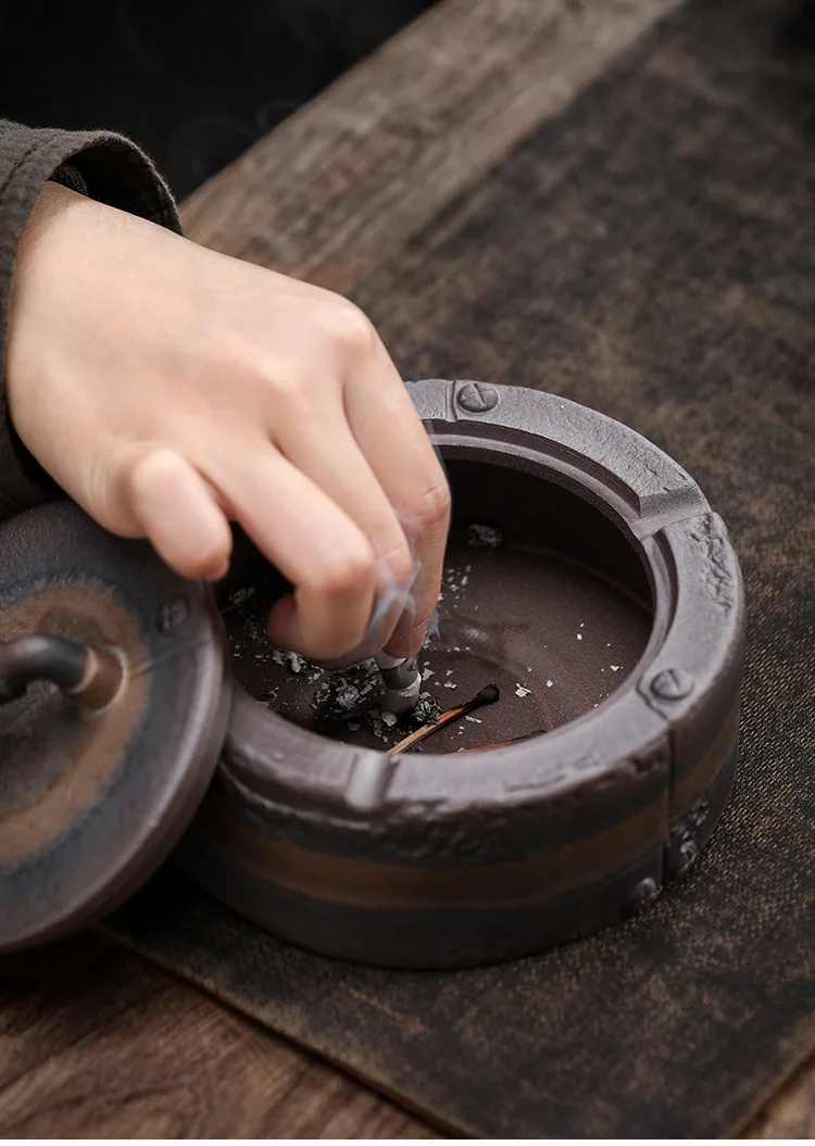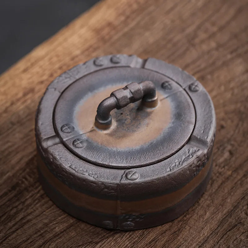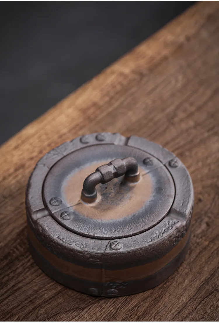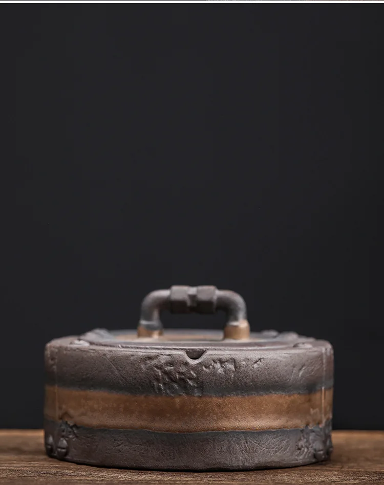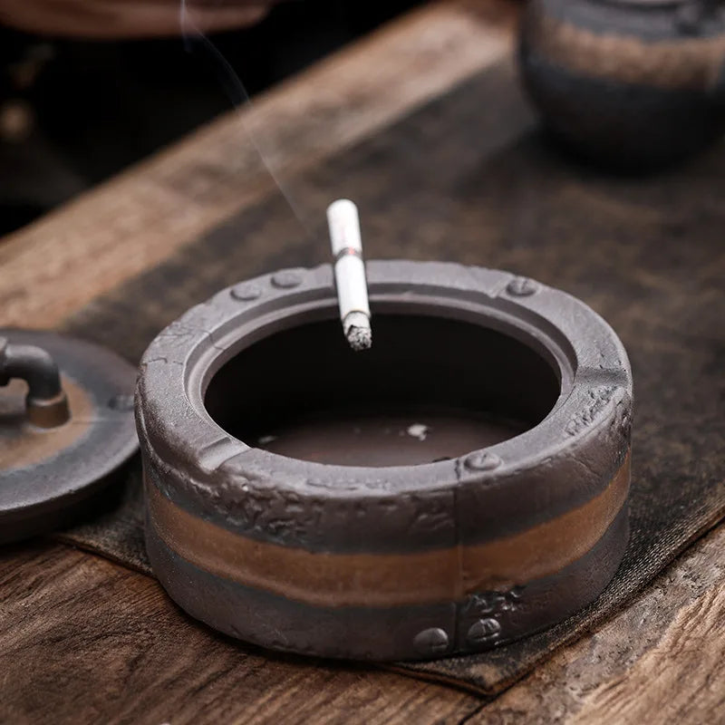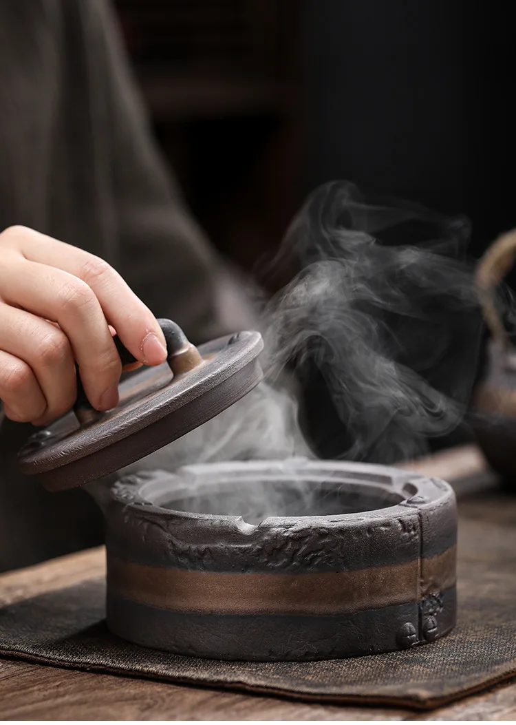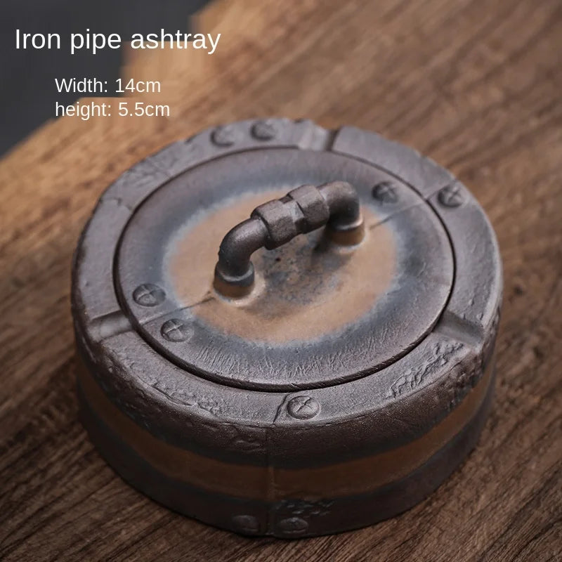 Custom Large Ceramic Ashtray Creative Handmade Retro Office Living Room Gilding Round Ashtray with Lid
