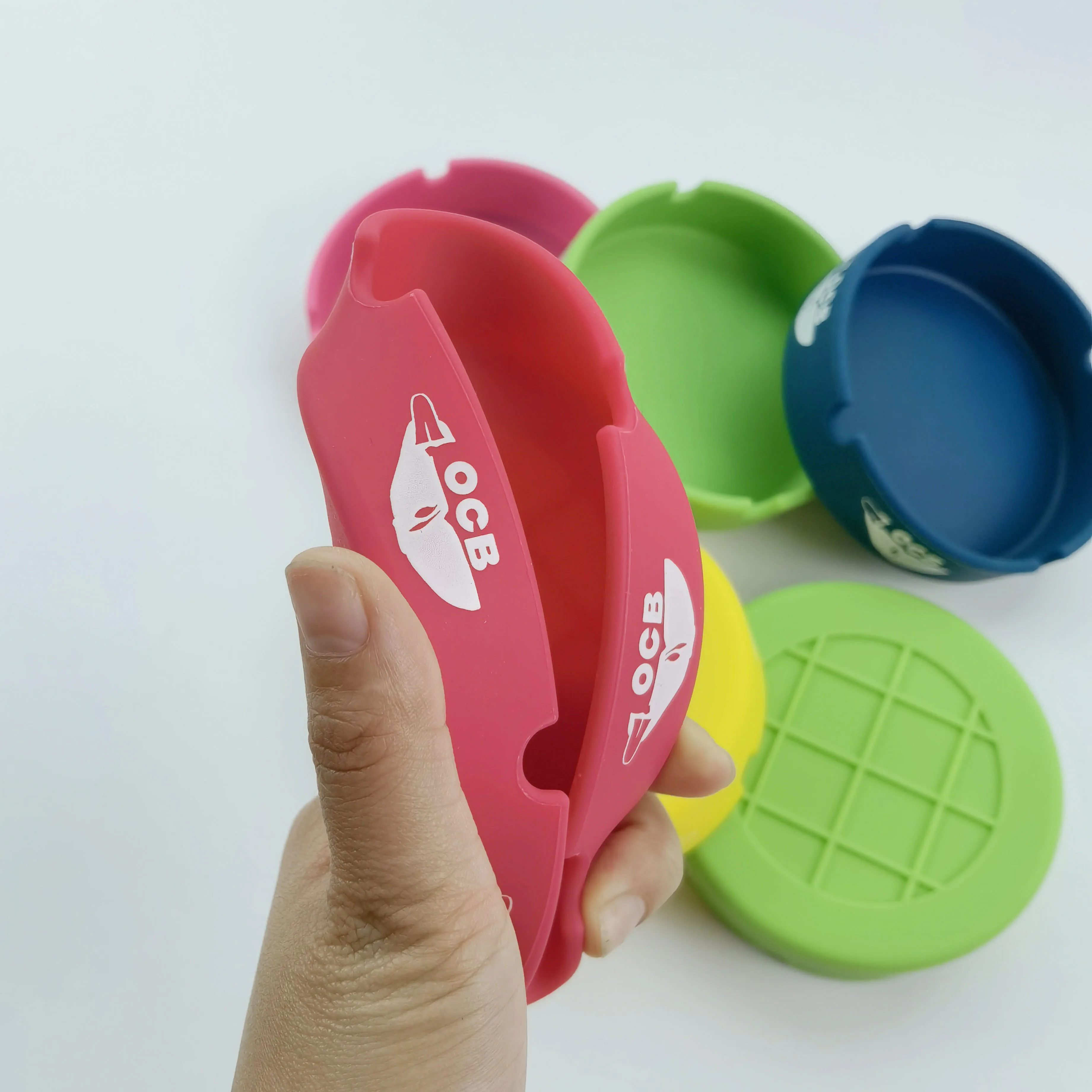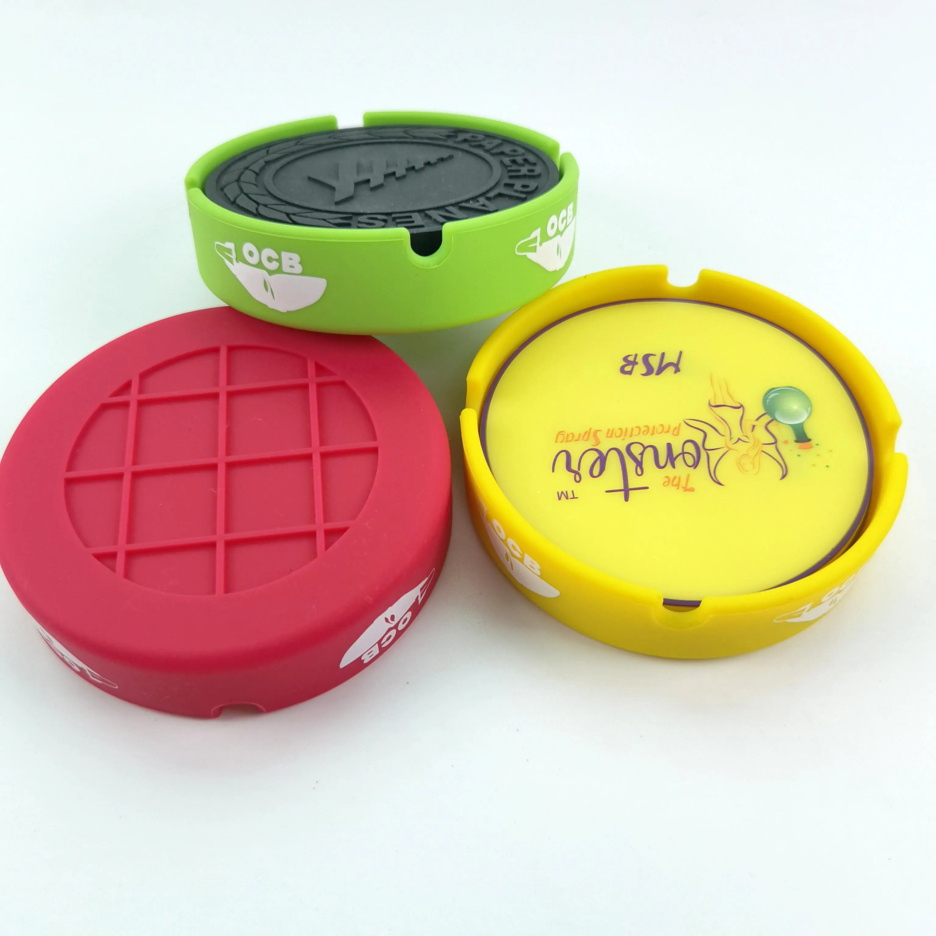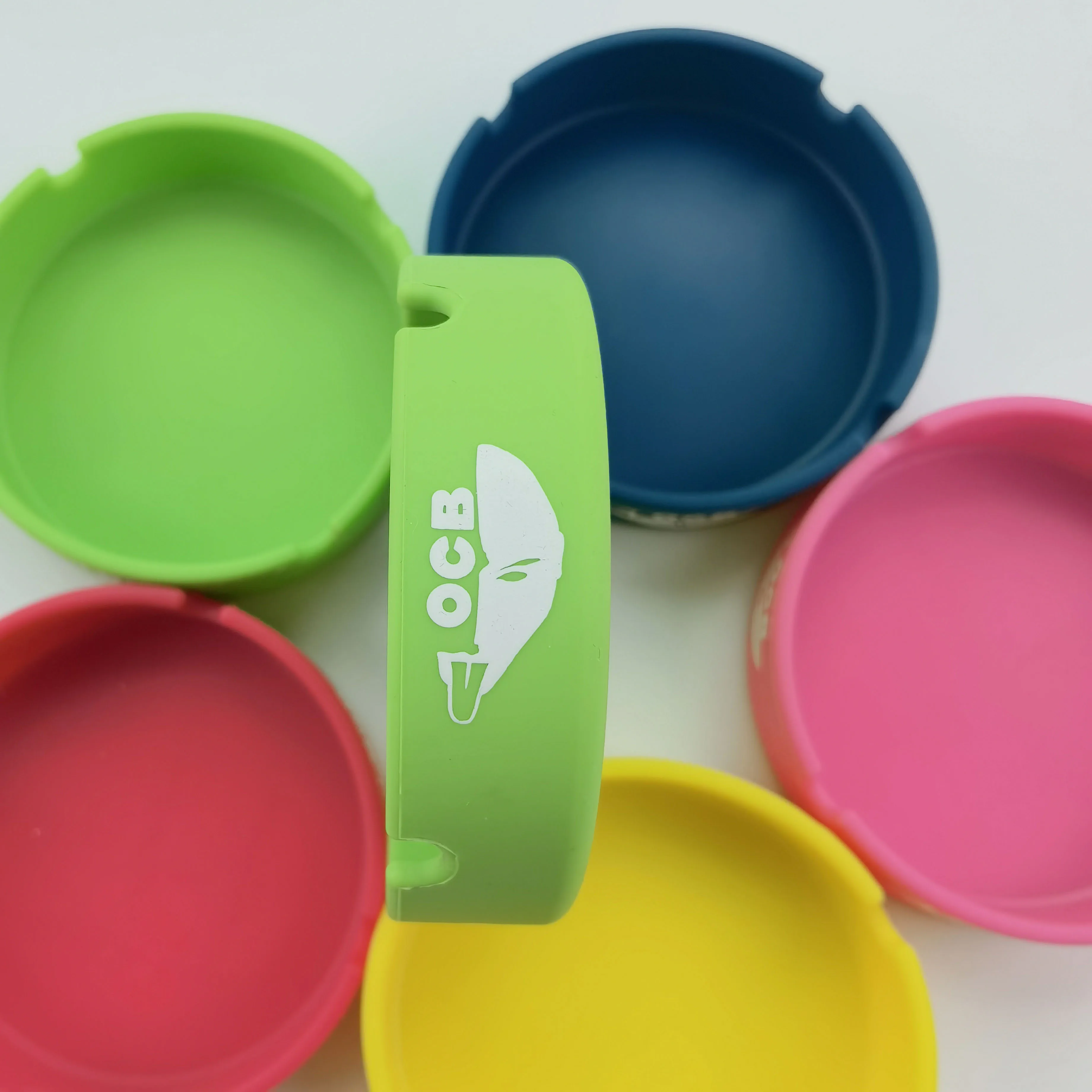 Round Silicone Ashtray 10*2.5CM Size Custom Printing logo Easy Clean Smoking Ashtray for Cigar Holder
